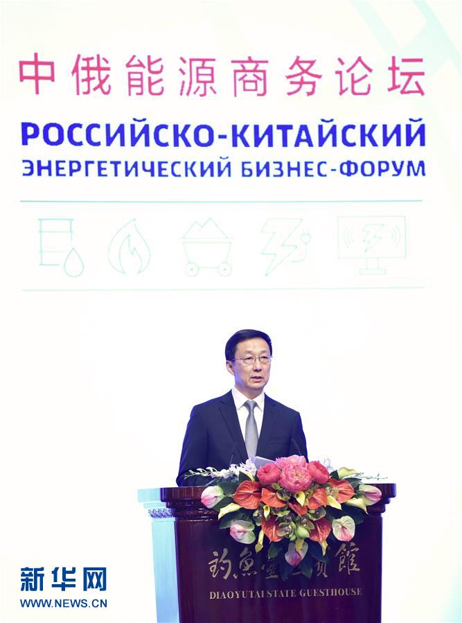 11月29日,中俄能源商務(wù)論壇在北京釣魚臺國賓館開幕。中共中央政治局常委、國務(wù)院副總理韓正出席開幕式,宣讀習(xí)近平主席賀信并致辭。 新華社記者 殷博古 攝