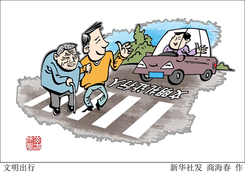 漫畫(huà):文明出行 新華社發(fā) 商海春 作