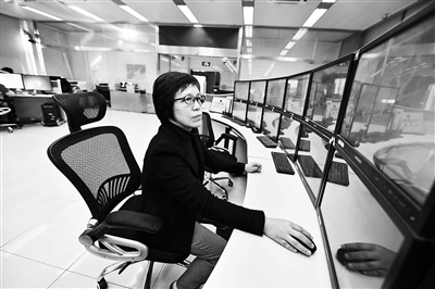 ▲北京市氣象臺(tái)首席預(yù)報(bào)員郭金蘭正在氣象會(huì)商室查看氣象數(shù)據(jù)