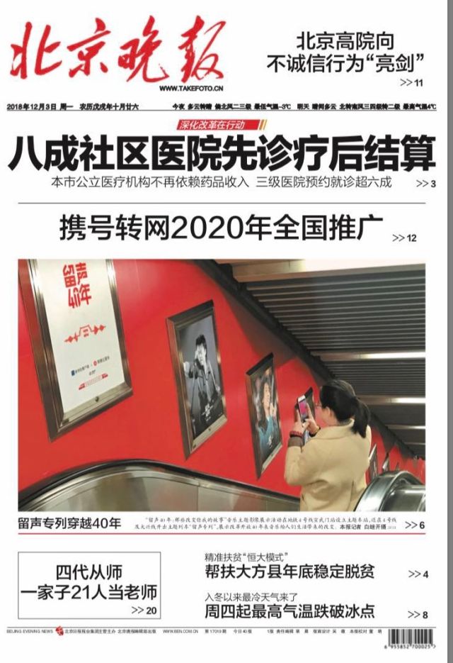 騰訊新聞客戶端、騰訊視頻,搜狐視頻以及新京報(bào)“我們視頻”等對(duì)影像展進(jìn)行了專題報(bào)道及視頻推送?!侗本┩韴?bào)》頭版展示了本次影像展,并大篇幅介紹了“留聲40年”音樂(lè)車廂的情況。北青網(wǎng)聯(lián)合“北京頭條”App在影像展當(dāng)天推出了多張圖片報(bào)道。今日頭條、觀媒等媒體機(jī)構(gòu)制作的影像展小視頻和公眾號(hào)推文在各大網(wǎng)站和朋友圈廣泛傳播,為“留聲40年”影像展?fàn)I造了濃厚的輿論氛圍。