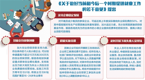 今年以來,我國就業(yè)形勢總體穩(wěn)定,穩(wěn)中有進。但是,個別地區(qū)、個別企業(yè)還面臨著一些新挑戰(zhàn)。為穩(wěn)定就業(yè),擴大幫扶范圍,增強支持力度,國務(wù)院日前印發(fā)《關(guān)于做好當(dāng)前和今后一個時期促進就業(yè)工作的若干意見》,為相關(guān)部門和地方政府做好就業(yè)工作提供了明確的目標和方向——