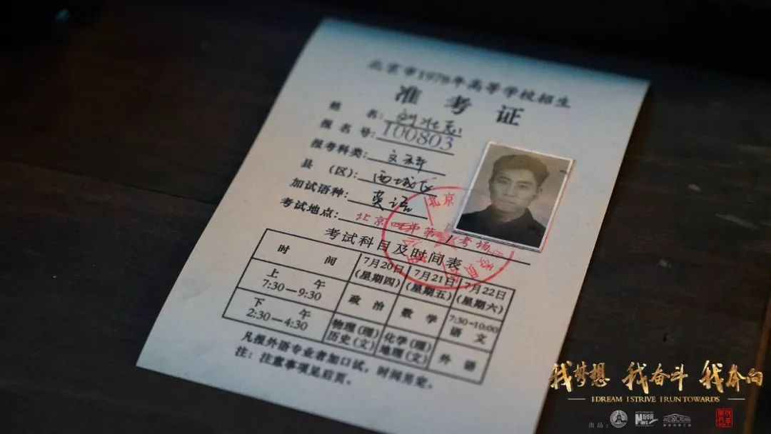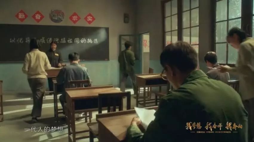 1978年高考恢復(fù),中國(guó)由此重新迎來了尊重知識(shí)、尊重人才的春天。坐在1978年正在進(jìn)行高考的教室里,考生劉燁寫下自己作文的最后一句話:“為祖國(guó)和人民不懈奮斗”。他在鏡頭前書寫下“奮斗”二字,體現(xiàn)了那個(gè)年代的人渴望建設(shè)祖國(guó)的一腔熱血。