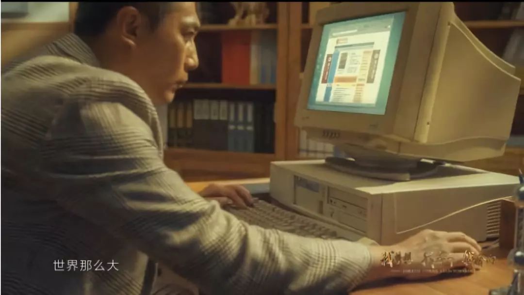 “上網(wǎng)沖浪”這個(gè)詞對(duì)于新一代的年輕人來說,已經(jīng)陌生了許多,而在當(dāng)年卻是最時(shí)髦的娛樂方式。劉燁在臺(tái)式機(jī)上瀏覽的頁面是上世紀(jì)90年代新華網(wǎng)網(wǎng)頁?,頁面上跳出了中國(guó)加入WTO的新聞。