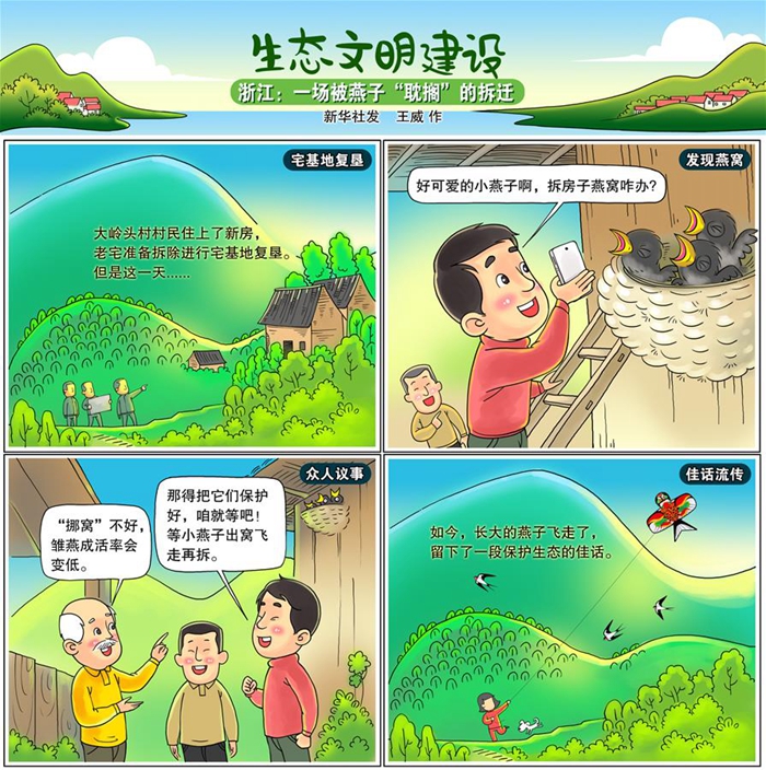 小燕子順利長大了,也能飛了,竹源鄉(xiāng)干部再三確認(rèn)燕子已經(jīng)離開燕窩后,才拆除老宅。大嶺頭村的最后一幢危房,隨著綿長的梅雨季一起“結(jié)束”。