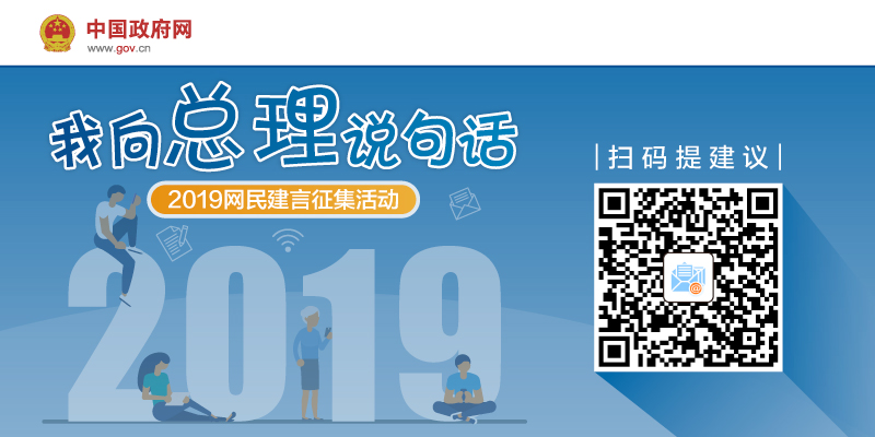 新華社北京12月20日電? 12月20日,中國(guó)政府網(wǎng)聯(lián)合人民網(wǎng)、新華網(wǎng)等20家網(wǎng)絡(luò)媒體和平臺(tái),共同發(fā)起2019“我向總理說句話”網(wǎng)民建言征集活動(dòng),聽取網(wǎng)民對(duì)政府工作的意見建議。活動(dòng)將持續(xù)到2019年全國(guó)兩會(huì)結(jié)束。