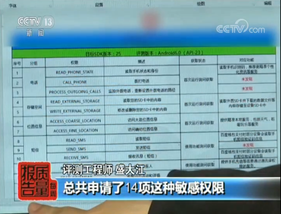 上海市消費(fèi)者權(quán)益保護(hù)委員會(huì)、副秘書長 唐健盛:從測試情況來看,可以說情況非常不理想,很多的頭部App實(shí)際上在權(quán)限的申請(qǐng)和調(diào)用方面,其實(shí)是違反了一些必要性、正當(dāng)性等等原則的。