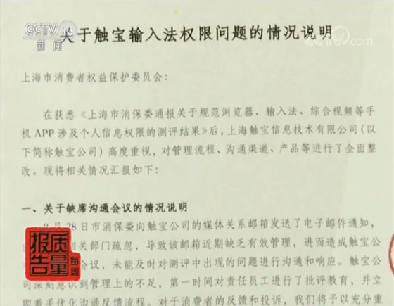 上海市消費(fèi)者權(quán)益保護(hù)委員會(huì)副秘書長 唐健盛:我們都用了消費(fèi)者跟企業(yè)溝通的一些渠道,也就是說它在App或者它的官網(wǎng)上面明示的一些郵箱傳真等等。但是我們非常遺憾地看到,這些通知很多企業(yè)都沒有得到足夠的重視,或者說我們這次也了解到,有些企業(yè)它根本和消費(fèi)者溝通的郵箱可能是幾個(gè)月甚至于大半年都沒有去看過的。在隨后的媒體會(huì)上,上海市消保委正式通報(bào)了對(duì)18款手機(jī)應(yīng)用軟件App的評(píng)測結(jié)果,最終公布了“獵豹瀏覽器,觸寶輸入法和芒果TV視頻”這三款A(yù)pp申請(qǐng)權(quán)限存在找不到對(duì)應(yīng)功能等問題。據(jù)介紹, 直到這場媒體會(huì)之前,獵豹、觸寶和芒果TV這三家相關(guān)企業(yè)對(duì)于上海市消保委的多方聯(lián)系,始終沒有回應(yīng),也沒有出席相關(guān)的技術(shù)溝通會(huì)。