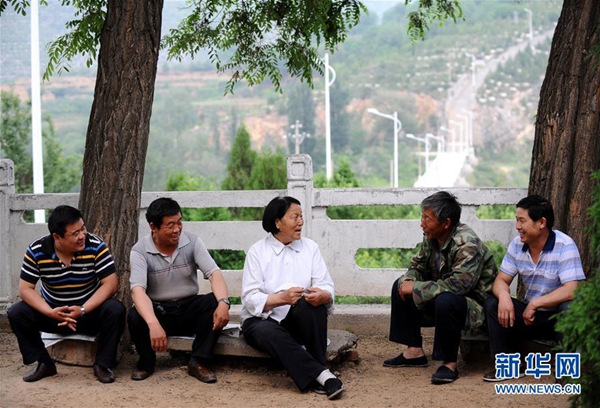 申紀蘭(中)在山西省平順縣西溝村和村民交流(2011年6月13日攝)。新華社記者 燕雁 攝