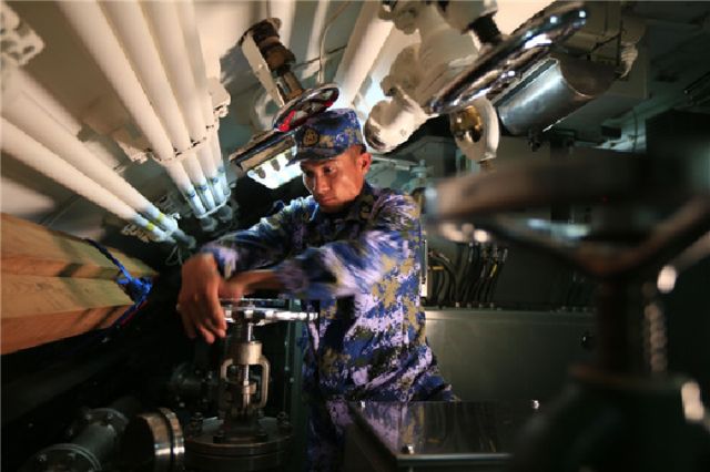 ↑任務(wù)中,肖海生在檢查AIP系統(tǒng)。