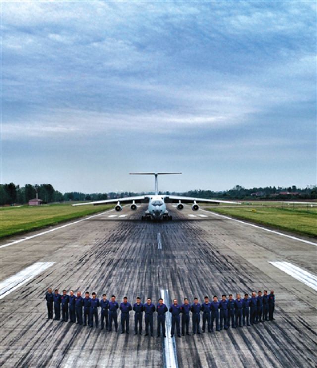 ↑“昆侖雄鷹大隊(duì)”飛行三大隊(duì)飛行員與飛機(jī)合影