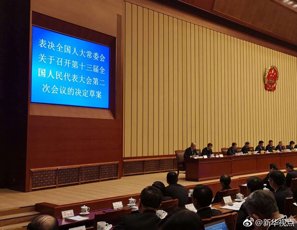 十三屆全國人大常委會(huì)第七次會(huì)議29日表決通過了關(guān)于召開十三屆全國人大二次會(huì)議的決定。根據(jù)決定,十三屆全國人大二次會(huì)議將于2019年3月5日在京召開。