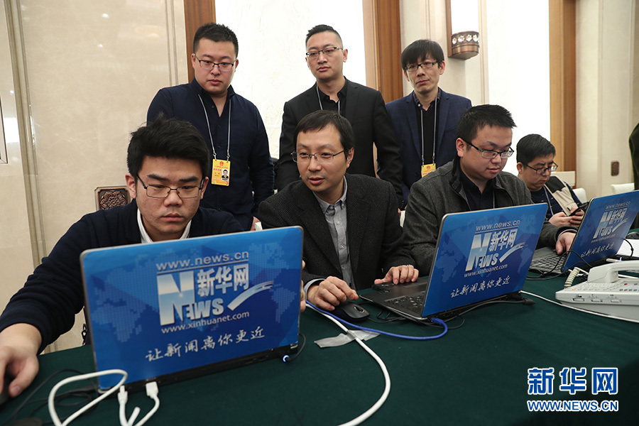 新華網(wǎng)直播團(tuán)隊(duì)進(jìn)行準(zhǔn)備工作