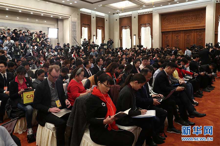 3月4日,十三屆全國人大一次會議在人民大會堂新聞發(fā)布廳舉行新聞發(fā)布會,由大會發(fā)言人就大會議程和人大工作相關(guān)的問題回答中外記者的提問。圖為新聞發(fā)布會現(xiàn)場記者。新華網(wǎng)/中國政府網(wǎng) 翟子赫 攝