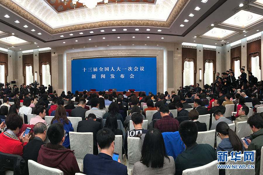 3月4日,十三屆全國人大一次會議在人民大會堂新聞發(fā)布廳舉行新聞發(fā)布會,由大會發(fā)言人張業(yè)遂就大會議程和人大工作相關的問題回答中外記者的提問。圖為新聞發(fā)布會現場。新華網/中國政府網 陳杰 攝
