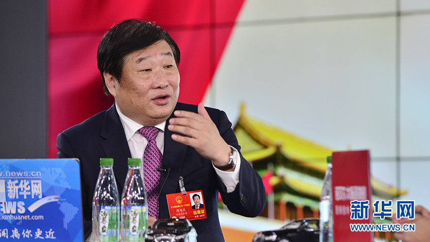 3月5日,全國人大代表、山東重工集團(tuán)董事長、濰柴集團(tuán)董事長譚旭光做客新華網(wǎng)2018全國兩會(huì)特別訪談。新華網(wǎng) 李相博攝