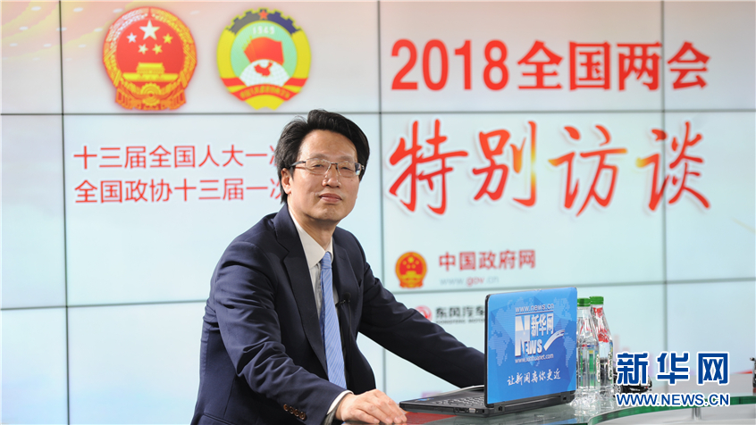 圖為,中國宏觀經(jīng)濟(jì)研究院常務(wù)副院長王昌林做客新華網(wǎng)2018全國兩會特別訪談“新跨越兩會專家講” 新華網(wǎng) 張斌攝?