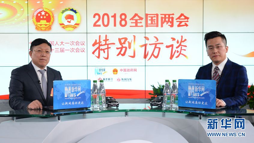 3月6日,全國人大代表、東風(fēng)汽車集團(tuán)有限公司技術(shù)中心主任談民強(qiáng)(左)做客新華網(wǎng)2018全國兩會特別訪談。新華網(wǎng) 楊濛/攝