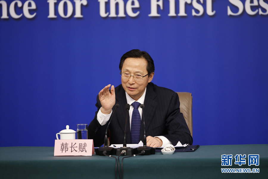 十三屆全國人大一次會(huì)議新聞中心于3月7日在梅地亞中心多功能廳舉行記者會(huì),邀請(qǐng)農(nóng)業(yè)部部長韓長賦,農(nóng)業(yè)部新聞發(fā)言人、辦公廳主任潘顯政就“實(shí)施鄉(xiāng)村振興戰(zhàn)略 推動(dòng)農(nóng)業(yè)轉(zhuǎn)型升級(jí)”的相關(guān)問題回答中外記者的提問。圖為韓長賦回答記者提問。新華網(wǎng)/中國政府網(wǎng) 陳杰 攝