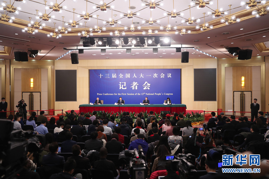 十三屆全國人大一次會議新聞中心于3月7日在梅地亞中心多功能廳舉行記者會,邀請農(nóng)業(yè)部部長韓長賦,農(nóng)業(yè)部新聞發(fā)言人、辦公廳主任潘顯政就“實(shí)施鄉(xiāng)村振興戰(zhàn)略 推動農(nóng)業(yè)轉(zhuǎn)型升級”的相關(guān)問題回答中外記者的提問。圖為記者會現(xiàn)場。新華網(wǎng)/中國政府網(wǎng) 陳杰 攝