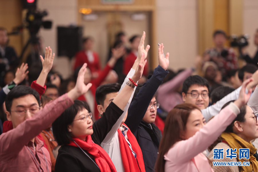 十三屆全國人大一次會(huì)議新聞中心于3月7日在梅地亞中心多功能廳舉行記者會(huì),邀請農(nóng)業(yè)部部長韓長賦,農(nóng)業(yè)部新聞發(fā)言人、辦公廳主任潘顯政就“實(shí)施鄉(xiāng)村振興戰(zhàn)略 推動(dòng)農(nóng)業(yè)轉(zhuǎn)型升級(jí)”的相關(guān)問題回答中外記者的提問。圖為現(xiàn)場記者舉手提問。新華網(wǎng)/中國政府網(wǎng) 陳杰 攝