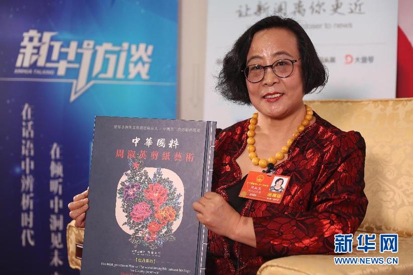 全國人大代表、河北蔚縣周淑英剪紙藝術館館長周淑英。新華網 王翰林 攝