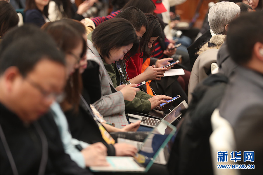 全國政協(xié)十三屆一次會議3月8日15:00在人民大會堂新聞發(fā)布廳舉行第二場記者會,邀請中央財經(jīng)領(lǐng)導(dǎo)小組辦公室副主任楊偉民,中國進出口銀行董事長、黨委書記胡曉煉,農(nóng)業(yè)部原副部長陳曉華,全國工商聯(lián)副主席、清華大學經(jīng)濟管理學院院長錢穎一,中國中化集團有限公司黨組書記、董事長寧高寧就推動經(jīng)濟高質(zhì)量發(fā)展回答記者提問。圖為媒體記者在現(xiàn)場。新華網(wǎng)/中國政府網(wǎng)?翟子赫 攝