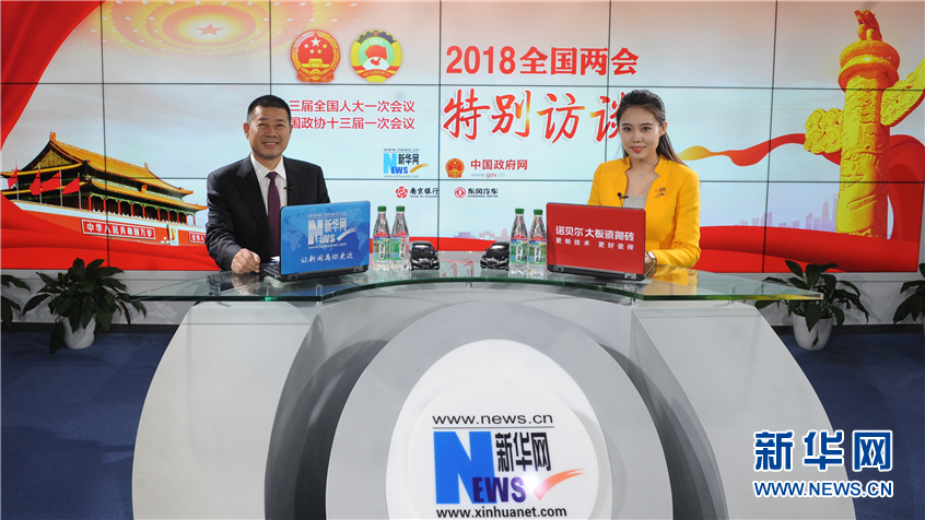 3月9日,全國人大代表、飛鶴乳業(yè)董事長冷友斌(左)做客新華網(wǎng)2018全國兩會特別訪談。新華網(wǎng) 郭小天攝