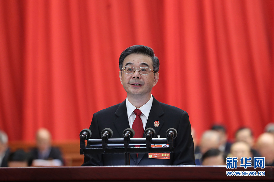 3月9日,十三屆全國人大一次會議在北京人民大會堂舉行第二次全體會議。最高人民法院院長周強作最高人民法院工作報告。 新華社記者 王曄 攝