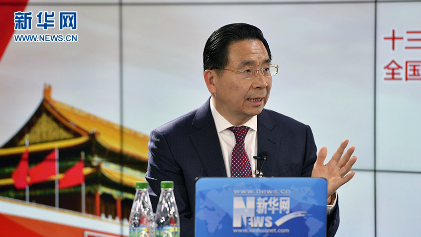 圖為全國人大代表,中國移動浙江公司黨委書記、董事長、總經(jīng)理鄭杰做客新華網(wǎng)2018全國兩會特別訪談。新華網(wǎng) 李相博攝