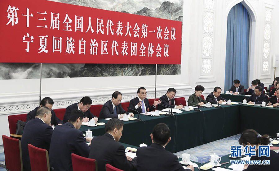 3月10日,中共中央政治局常委、國務(wù)院總理李克強參加十三屆全國人大一次會議寧夏代表團的審議。 新華社記者 丁林 攝