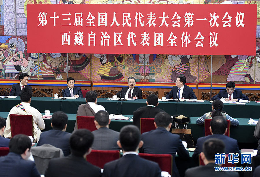 3月10日,中共中央政治局常委、中央紀委書記趙樂際參加十三屆全國人大一次會議西藏代表團的審議。 新華社記者 張領(lǐng) 攝