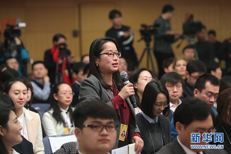 十三屆全國人大一次會議新聞中心3月10日上午10時45分在梅地亞中心多功能廳舉行記者會,邀請科技部部長萬鋼、政策法規(guī)與監(jiān)督司司長賀德方、創(chuàng)新發(fā)展司司長許倞就“加快建設創(chuàng)新型國家”相關問題回答中外記者提問。圖為光明日報記者提問。 新華網(wǎng)/中國政府網(wǎng) 陳杰 攝