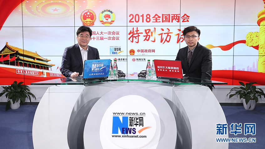 3月11日,全國(guó)政協(xié)委員、中國(guó)人民大學(xué)校長(zhǎng)劉偉(左)做客新華網(wǎng)2018全國(guó)兩會(huì)特別訪談。新華網(wǎng)?郭小天攝