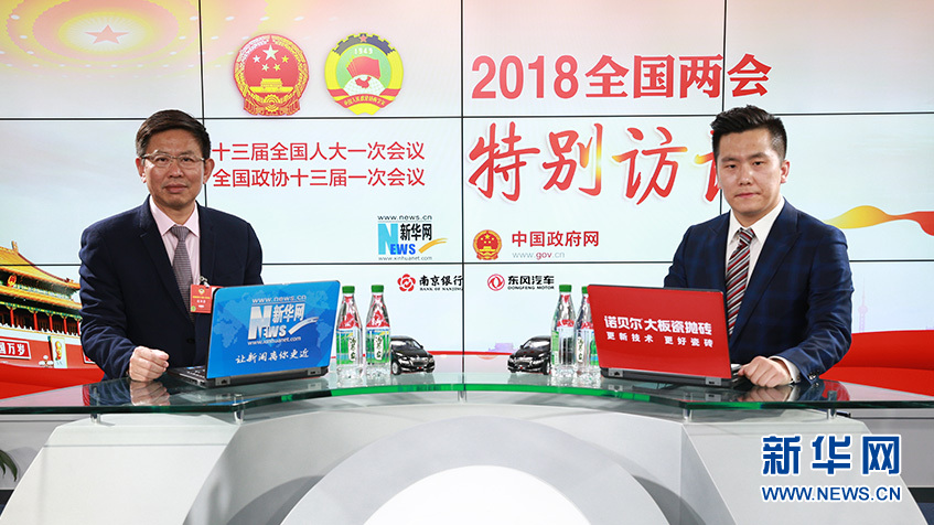 全國(guó)政協(xié)委員、華堅(jiān)集團(tuán)董事長(zhǎng)張華榮做客新華網(wǎng)2018全國(guó)兩會(huì)特別訪談。新華網(wǎng) 楊锘攝