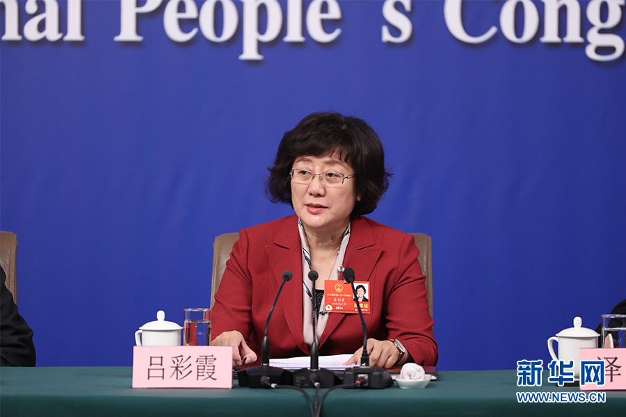 3月12日,十三屆全國(guó)人大一次會(huì)議新聞中心在梅地亞中心多功能廳舉行記者會(huì),邀請(qǐng)十二屆全國(guó)人大內(nèi)司委副主任委員王勝明、財(cái)經(jīng)委副主任委員烏日?qǐng)D、教科文衛(wèi)委副主任委員吳恒、環(huán)資委委員呂彩霞,全國(guó)人大常委會(huì)法工委副主任王超英、副主任許安標(biāo)就“人大立法工作”相關(guān)問(wèn)題回答中外記者提問(wèn)。圖為環(huán)資委委員呂彩霞回答記者提問(wèn)。新華網(wǎng)/中國(guó)政府網(wǎng) 翟子赫 攝