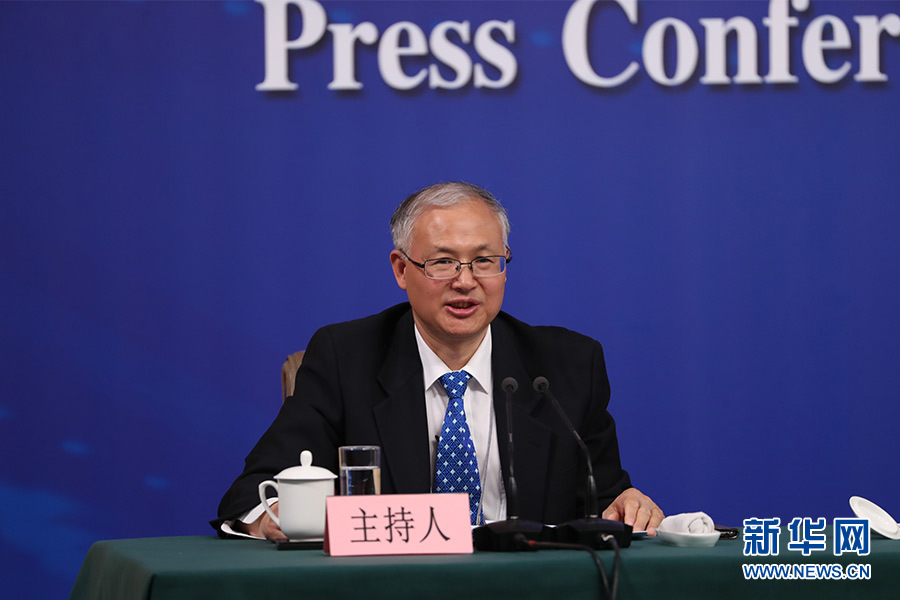 3月12日,十三屆全國(guó)人大一次會(huì)議新聞中心在梅地亞中心多功能廳舉行記者會(huì),邀請(qǐng)十二屆全國(guó)人大內(nèi)司委副主任委員王勝明、財(cái)經(jīng)委副主任委員烏日?qǐng)D、教科文衛(wèi)委副主任委員吳恒、環(huán)資委委員呂彩霞,全國(guó)人大常委會(huì)法工委副主任王超英、副主任許安標(biāo)就“人大立法工作”相關(guān)問(wèn)題回答中外記者提問(wèn)。圖為記者會(huì)主持人。新華網(wǎng)/中國(guó)政府網(wǎng) 翟子赫 攝