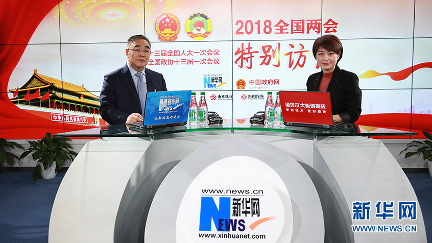 3月12日,全國人大代表,中國中醫(yī)科學(xué)院院長、天津中醫(yī)藥大學(xué)校長張伯禮院士(左)做客新華網(wǎng)2018全國兩會(huì)特別訪談。新華網(wǎng) 楊锘攝