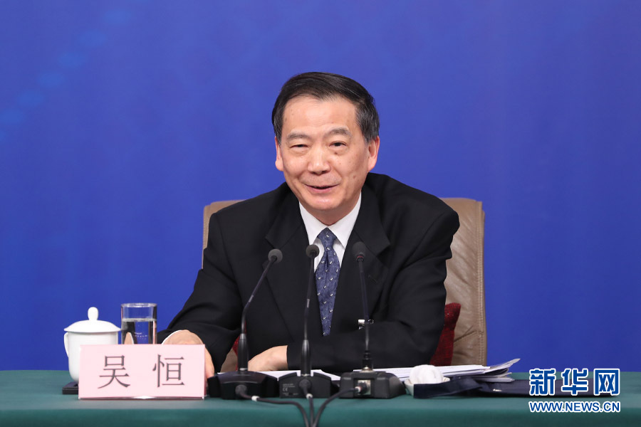 十三屆全國人大一次會(huì)議新聞中心于3月12日15時(shí)在梅地亞中心多功能廳舉行記者會(huì),邀請(qǐng)十二屆全國人大財(cái)經(jīng)委副主任委員尹中卿、教科文衛(wèi)委副主任委員吳恒、環(huán)資委副主任委員袁駟、內(nèi)司委委員鄭功成,全國人大常委會(huì)預(yù)算工委副主任劉修文、常委會(huì)辦公廳秘書局巡視員傅文杰就“人大監(jiān)督工作”相關(guān)問題回答中外記者提問。圖為教科文衛(wèi)委副主任委員吳恒回答記者提問。新華網(wǎng)/中國政府網(wǎng) 陳杰 攝