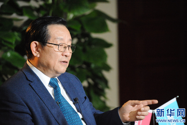 圖為科技部部長(zhǎng)萬(wàn)鋼接受新華網(wǎng)和中國(guó)政府網(wǎng)專訪。新華網(wǎng) 郭小天 攝