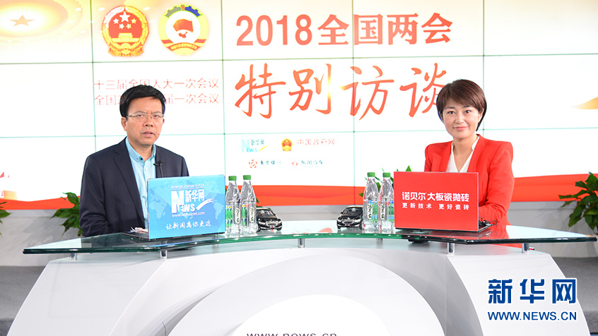 圖為全國政協(xié)委員,陜西建工集團(tuán)有限公司黨委書記、董事長、總經(jīng)理張義光(左)做客新華網(wǎng)2018全國兩會特別訪談。新華網(wǎng) 楊濛攝