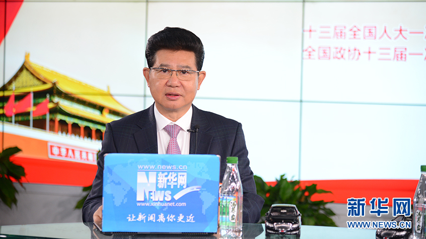 3月14日,全國(guó)政協(xié)委員、蘇寧環(huán)球董事長(zhǎng)張桂平做客新華網(wǎng)2018全國(guó)兩會(huì)特別訪談。新華網(wǎng) 楊濛攝