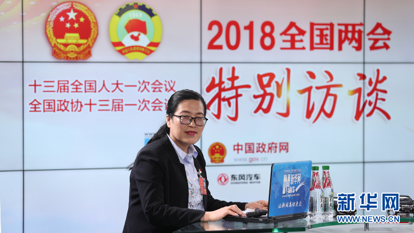 全國人大代表、中國工商銀行陜西省銅川市長虹路支行主任柜員郭曉燕做客新華網(wǎng)2018全國兩會特別訪談 新華網(wǎng) 郭小天攝