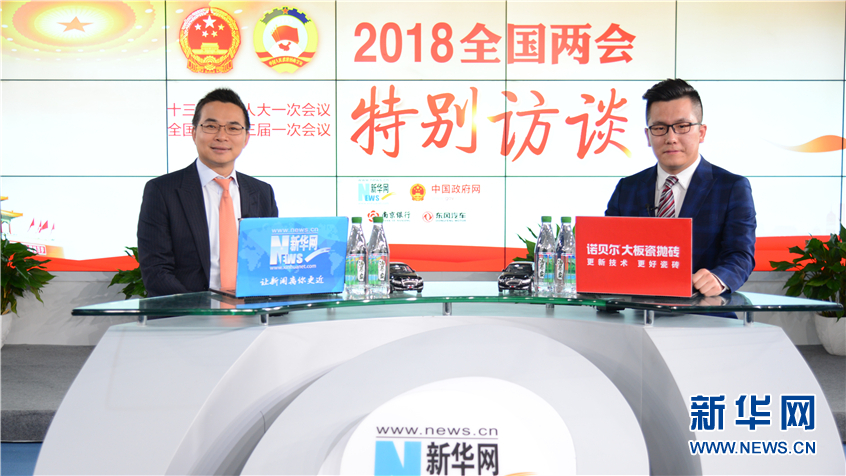 3月18日,全國人大代表、遠(yuǎn)景創(chuàng)始人兼CEO張雷(左)做客新華網(wǎng)2018全國兩會(huì)特別訪談。新華網(wǎng) 楊濛攝