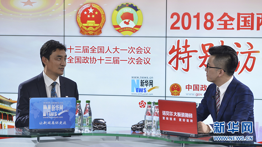 圖為18日,全國(guó)人大代表,云南省曲靖市委副書記、市長(zhǎng)董保同做客新華網(wǎng)2018全國(guó)兩會(huì)特別訪談。新華網(wǎng) 李相博攝