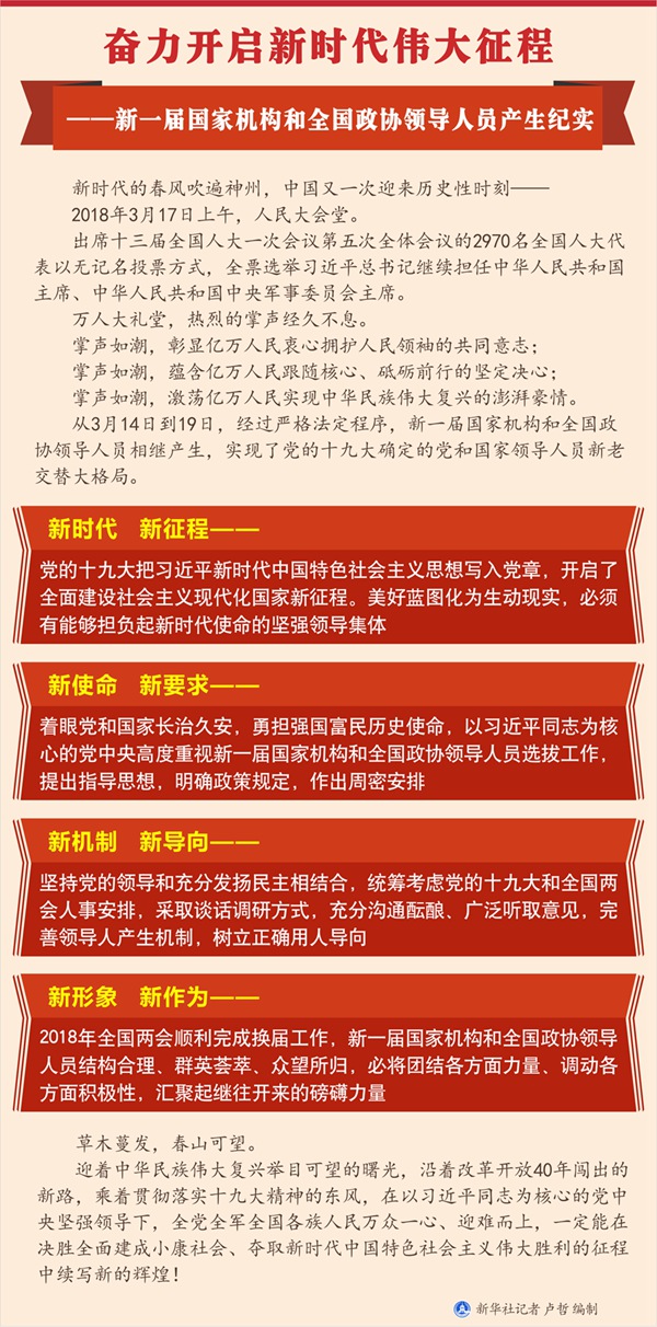 新華社北京3月19日電? 題:奮力開(kāi)啟新時(shí)代偉大征程——新一屆國(guó)家機(jī)構(gòu)和全國(guó)政協(xié)領(lǐng)導(dǎo)人員產(chǎn)生紀(jì)實(shí)