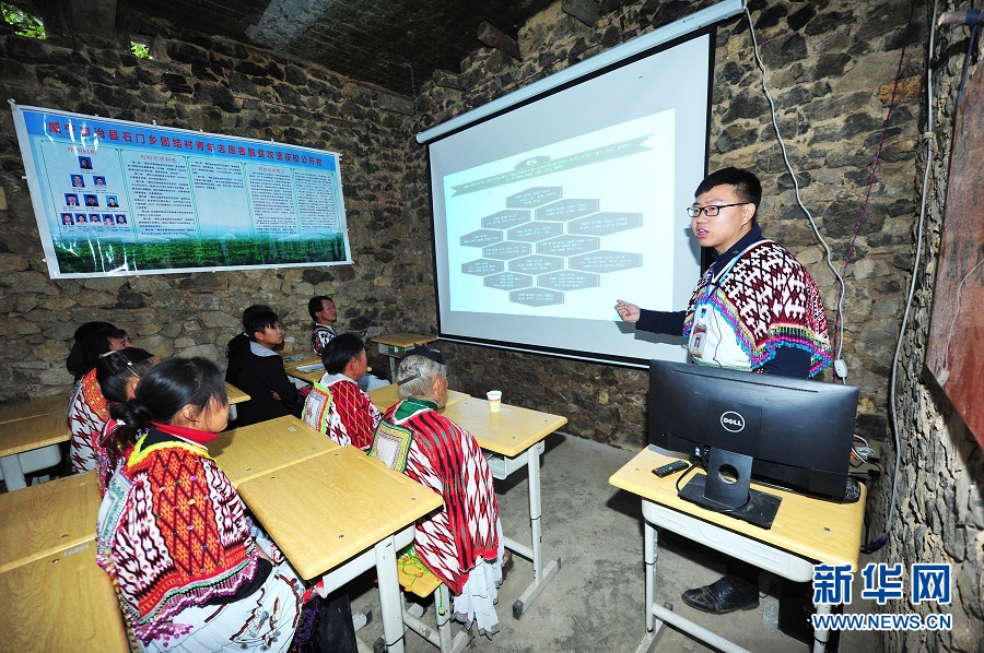在貴州省畢節(jié)市威寧彝族回族苗族自治縣石門鄉(xiāng)團(tuán)結(jié)村七里沖組脫貧攻堅(jiān)講習(xí)點(diǎn),村支書胡鈞溥在向當(dāng)?shù)厝罕娭v解十九大精神及相關(guān)的扶貧政策(2017年10月23日攝)。逐夢(mèng)征程,需要價(jià)值追求的引領(lǐng)和精神力量的支撐。 “社會(huì)主義核心價(jià)值觀決定著各民族共有精神家園的發(fā)展方向,必須在各民族中大力培育和踐行”“以社會(huì)主義核心價(jià)值觀為引領(lǐng),深入挖掘優(yōu)秀傳統(tǒng)農(nóng)耕文化蘊(yùn)含的思想觀念、人文精神、道德規(guī)范”“引導(dǎo)全社會(huì)積極培育和踐行社會(huì)主義核心價(jià)值觀,樹(shù)立良好道德風(fēng)尚”……今年全國(guó)兩會(huì)期間,習(xí)近平總書記多次強(qiáng)調(diào)培育和踐行社會(huì)主義核心價(jià)值觀。兩會(huì)上,社會(huì)主義核心價(jià)值觀被寫入國(guó)家根本大法。浩渺行無(wú)極,揚(yáng)帆但信風(fēng)。兩會(huì)結(jié)束后,代表委員們奔赴大江南北,與各地干部群眾一起,以實(shí)際行動(dòng)推動(dòng)社會(huì)主義核心價(jià)值觀建設(shè)落細(xì)落小落實(shí),持續(xù)構(gòu)筑中國(guó)精神、中國(guó)價(jià)值、中國(guó)力量,為劈波斬浪的“中國(guó)號(hào)”巨輪揚(yáng)起團(tuán)結(jié)奮進(jìn)的精神風(fēng)帆。新華社記者 陶亮 攝