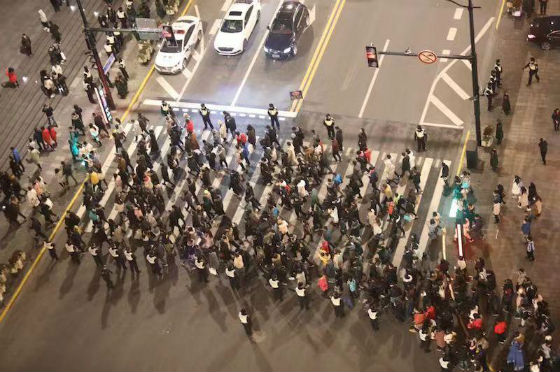 31日下午16時(shí)30分,前往外灘方向的游客不斷增多,警方在南京東路從河南中路到中山東一路段實(shí)行了機(jī)動(dòng)車(chē)單向禁止通行的管制措施。17時(shí)開(kāi)始,全面禁止南京東路(河南中路-中山東一路)段機(jī)動(dòng)車(chē)通行,只允許行人通行。