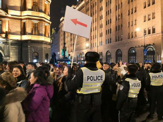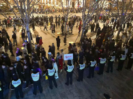 下午15時(shí)許,黃浦公安分局民警和增援安保工作的學(xué)警和武警共8600余名安保力量就已全部到崗,按照事先部署的安保方案嚴(yán)陣以待。此時(shí),南京東路往外灘的游客開(kāi)始聚集,警方在南京東路四川中路口、南京東路江西中路口實(shí)施交通管制,禁止機(jī)動(dòng)車(chē)輛通行。民警在現(xiàn)場(chǎng)放置了繞行提示版,提醒車(chē)輛繞行河南路,非機(jī)動(dòng)車(chē)輛繞行山東中路或山西中路。南京東路外灘、南京東路河南中路路口也沿用了保護(hù)行人過(guò)馬路安全的“人墻”——紅燈時(shí)攔住路口、綠燈時(shí)散開(kāi)在兩邊攔截車(chē)流護(hù)送人群過(guò)街的“開(kāi)關(guān)式”過(guò)馬路措施。