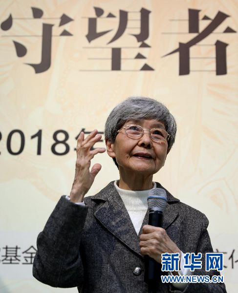 2018年3月30日,敦煌研究院名譽(yù)院長樊錦詩在“敦煌文化守望者”全球志愿者派遣計(jì)劃首期出征儀式上致辭。 新華社記者 劉穎 攝