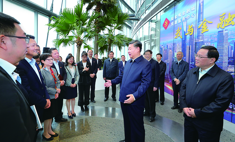 2018年11月6日至7日,中共中央總書記、國家主席、中央軍委主席習近平在上??疾?。這是6日上午,習近平在上海中心大廈22層的陸家嘴金融城黨建服務中心,同正在聯合開展主題黨日活動的企業(yè)黨員親切交談。 新華社記者 謝環(huán)馳/攝